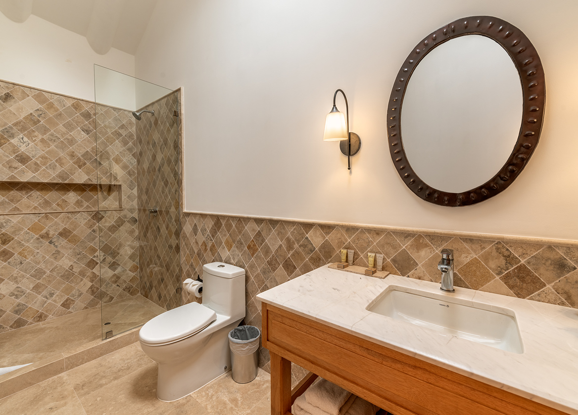 Baño con ducha, Ammenties, Secadora de pelo, agua mineral de cortesía la primera noche, artículos de tocador, WiFi sin cargo, edredones de plumas, ropa de cama de algodón, baños de mármol con tina o ducha.